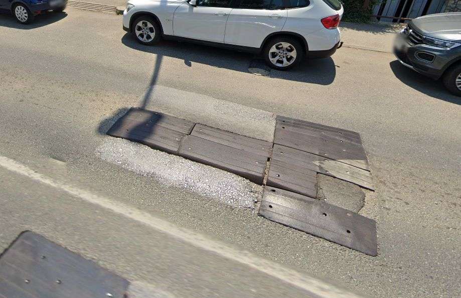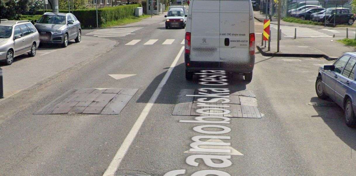 Samoborska 170, uspornik se raspada i zbog neadekvatnih dimenzija oštećuje vozila. Slika je iz 2021, sad je stanje još gore nego na slici.