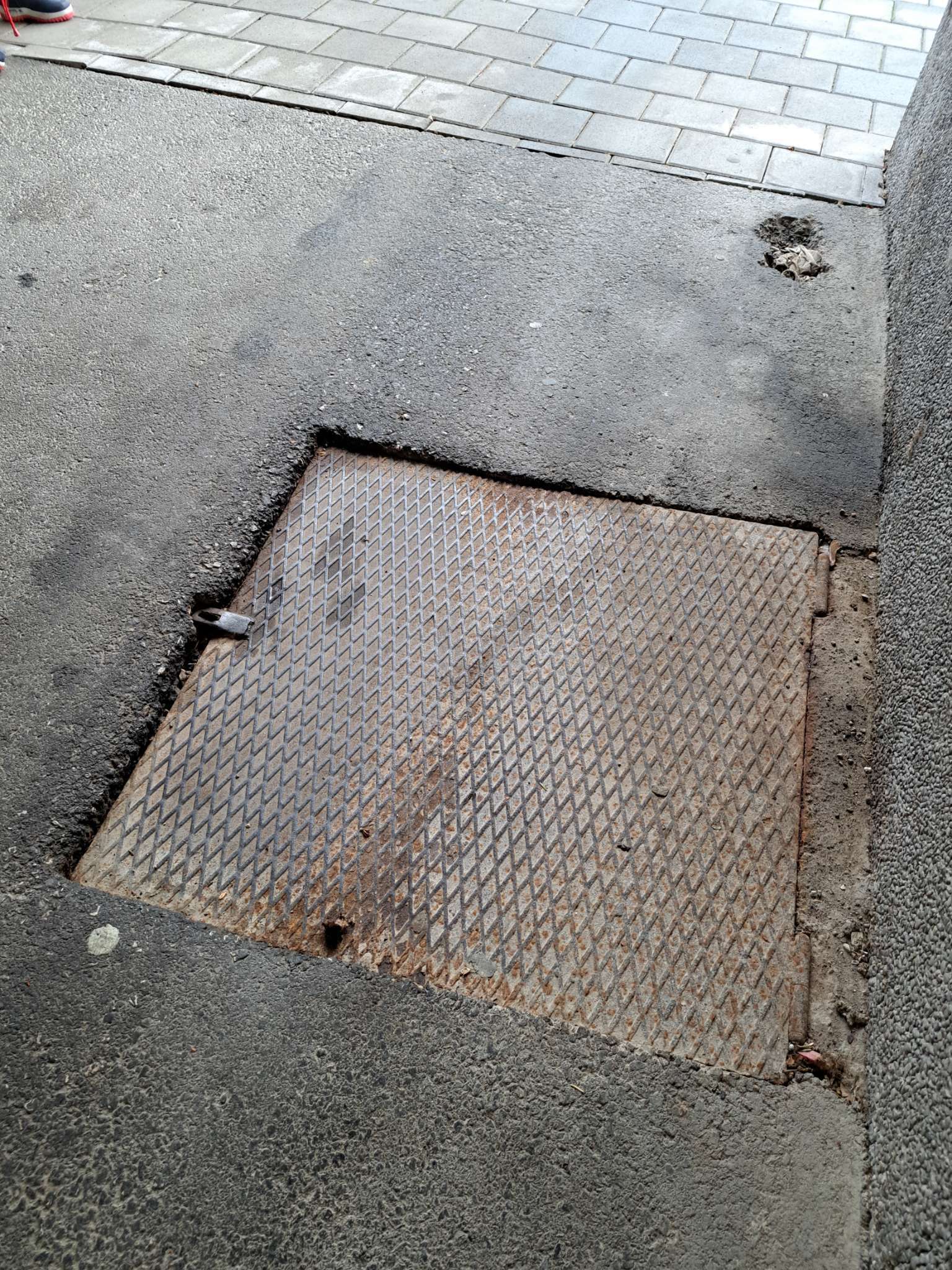 • Ploča je tanka i jako se piga svakim prelaskom kotača preko nje. potrebno je sanirati to, izrezati asvalt i izbetonirati drugi jači okvir sa jačom pločom.
