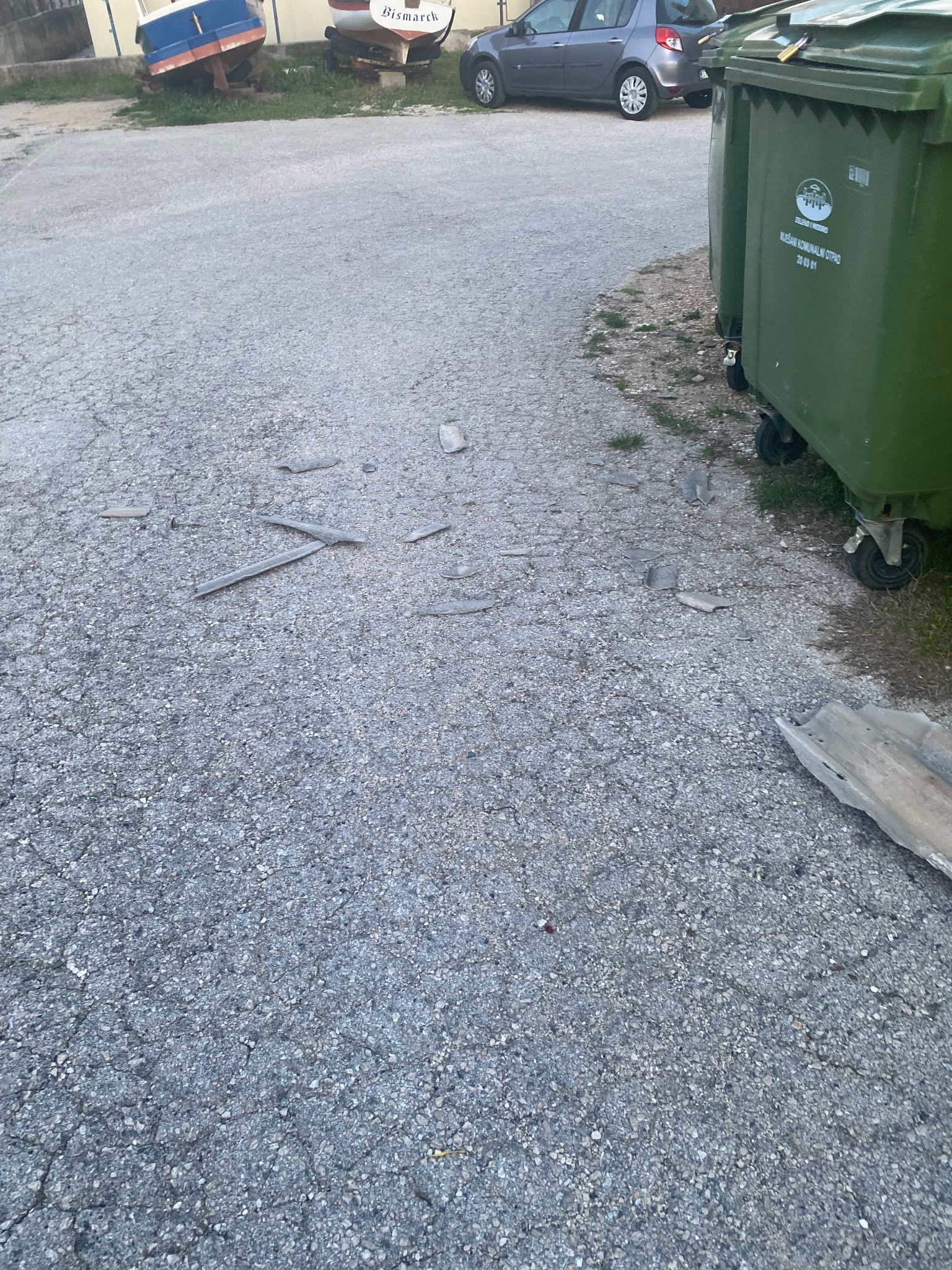 Neuređena državna čestica, na kojoj su ilegalne garaze i olupine vozila, brodova, kamp kucica koje se uporno uz sve molbe i izdana rjesenja od strane inspekcije, komunalna sluzba ne zeli ukolonit. Dok se ne dogodi nesto.