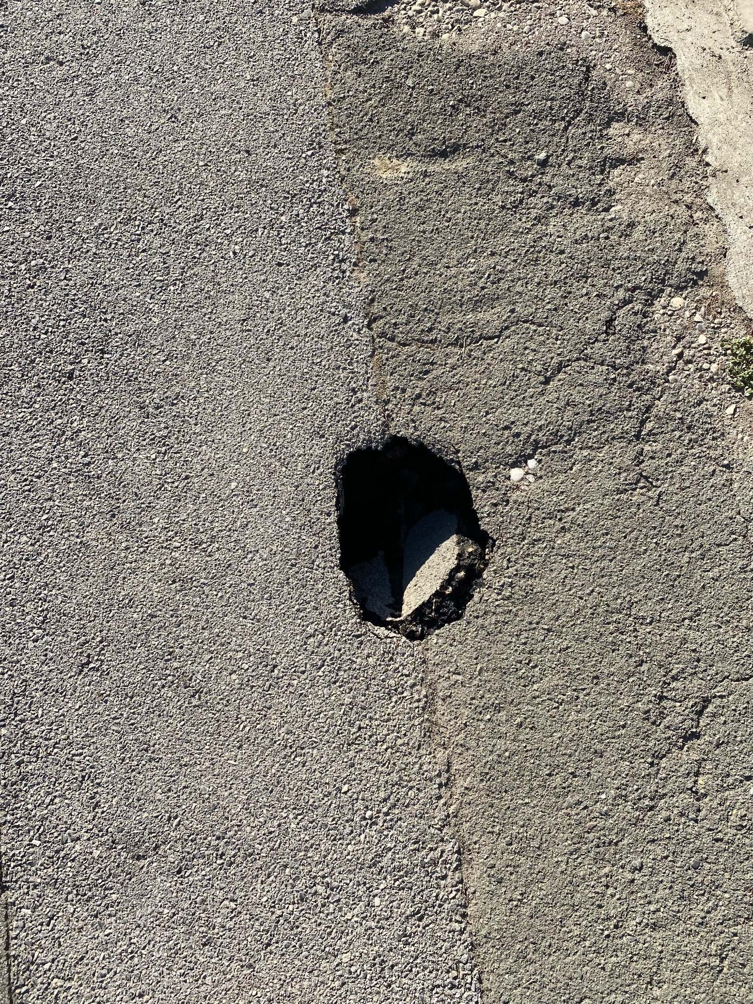 Rupa promjera 40 cm stvorila se na nogostupu ispred parkirališnog mjesta obiteljske kuće. Unutrašnjost rupe je šuplja oko jednog metra i postoji mogućnost širenja rupe.